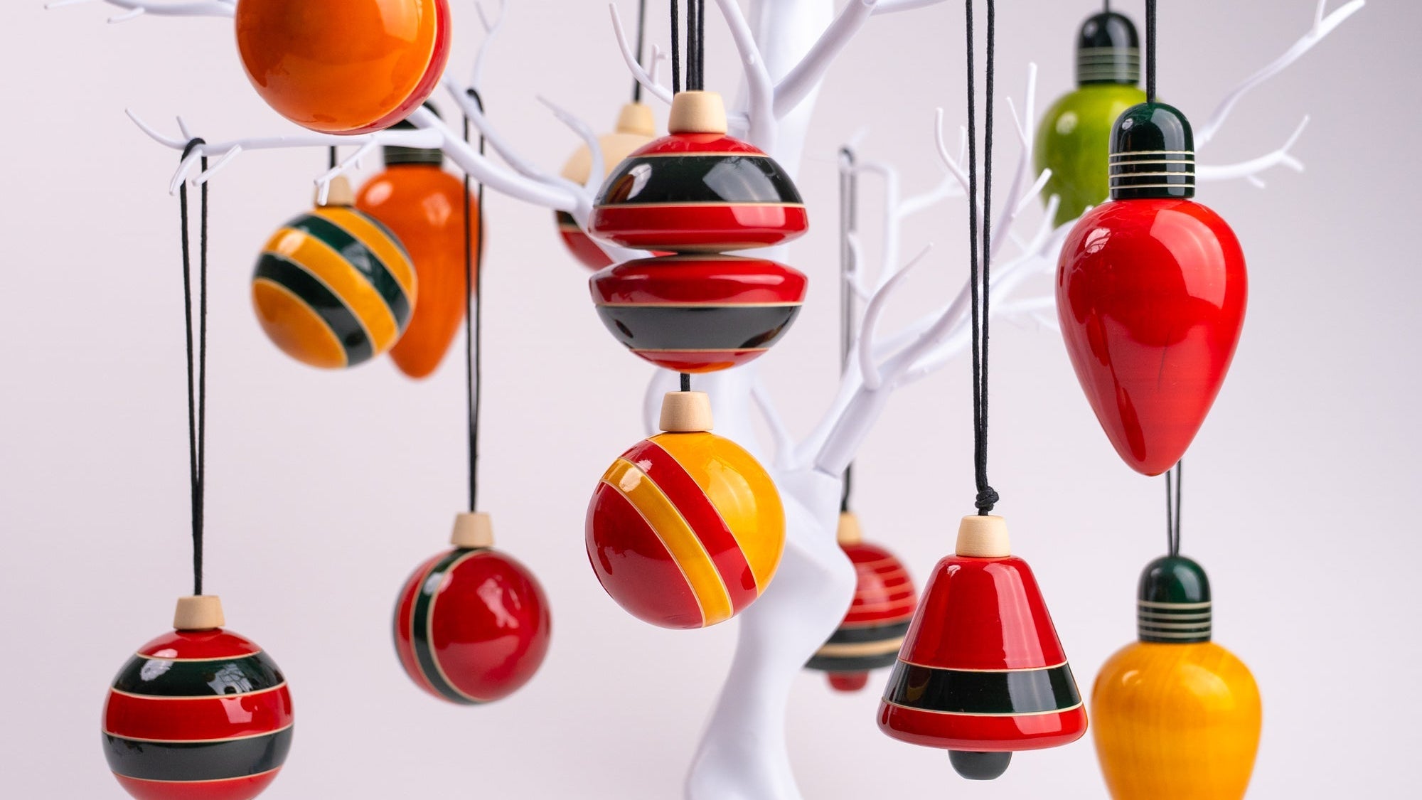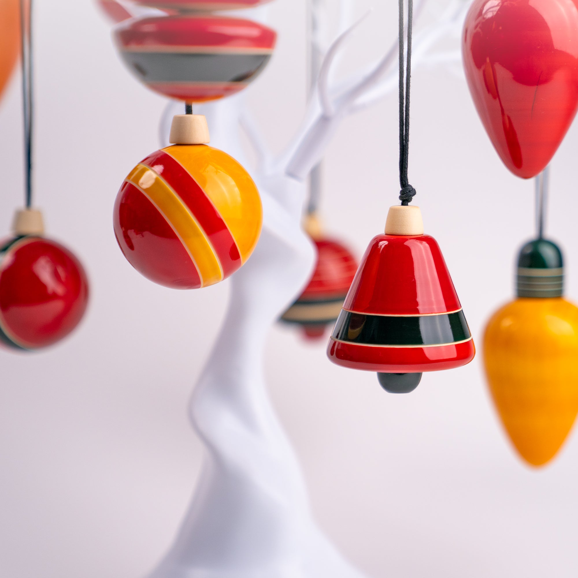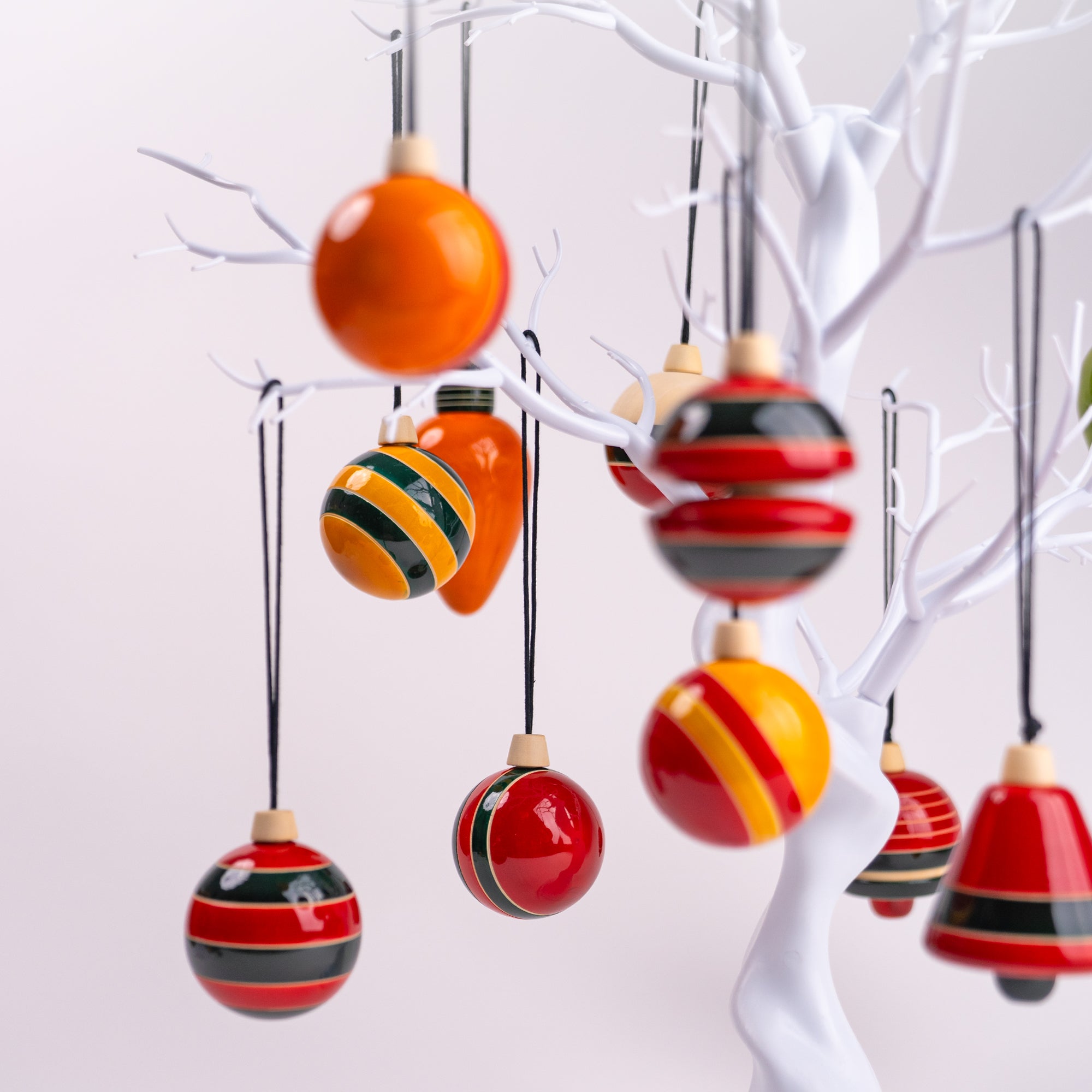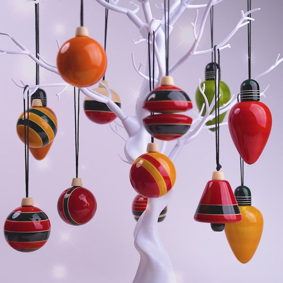 Meticulously carved using locally grown Ivory wood, our tree ornaments feature bright and beautiful earthy colours that are extracted from natural sources such as turmeric and indigo and finished with natural Lac, a non-toxic natural resin.
